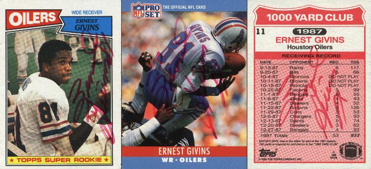 Ernest Givins, home address*, 3 cards, sent 10/02/00