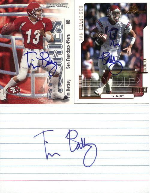 Tim Rattay, c/o San Francisco 49ers, 2 cards and 1 index card, sent 10/30/00