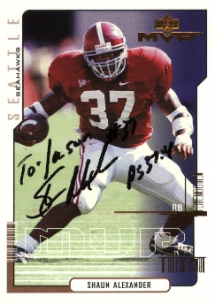 Shaun Alexander, c/o Seattle Seahawks, 1 card, sent 12/11/00
