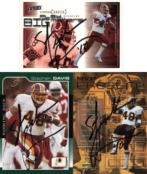 Stephen Davis, c/o Washington Redskins, 3 cards, sent 12/04/00