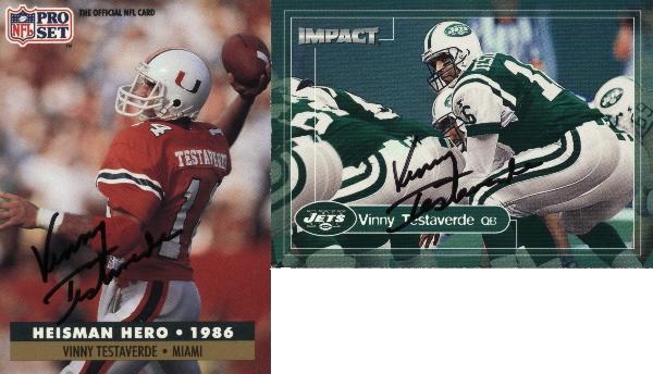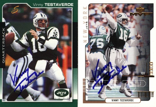 Vinny Testaverde, c/o New York Jets, 3 cards, sent 12/11/00