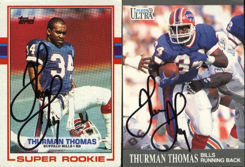 Thurman Thomas, c/o Miami Dolphins, 2 cards, sent 10/02/00