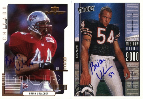 Brian Urlacher, c/o Chicago Bears, 2 cards and 1 index card, sent 10/30/00