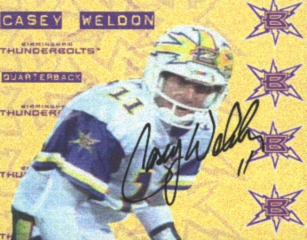 Casey Weldon, c/o Birmingham Thunderbolts, 1 card, sent 02/12/01