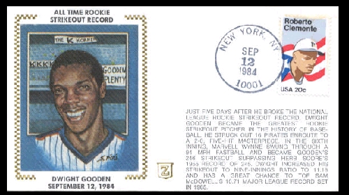 "Doctor K" blazed onto the major league scene in 1984 with the New York Mets, winning the Rookie of the Year Award with a 17-9 record, a 2.60 ERA, and a rookie-record 276 strikeouts. His sophomore season saw more of the same, as Gooden became the youngest player in history to win the Cy Young Award with a 24-4 record, 1.53 ERA, and 268 strikeouts. Doc's flame began flickering fast, however, as he never saw another 20-win season after 1985, and he faced drug and injury problems. In 1989, Gooden became the third-youngest player to win 100 major league games. A four-time National League All-Star in the 1980s, he has attempted several comebacks, but has never regained the control and speed he once had as a young pitcher with the Mets. Currently with the New York Yankees, Gooden is only a few wins away from a career mark of 200, and currently sits at #37 on the all-time strikeouts leaders list, making him a borderline candidate for Cooperstown.